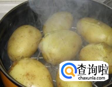 将洗净的土豆放入蒸锅中,大火蒸二十分钟,蒸熟。