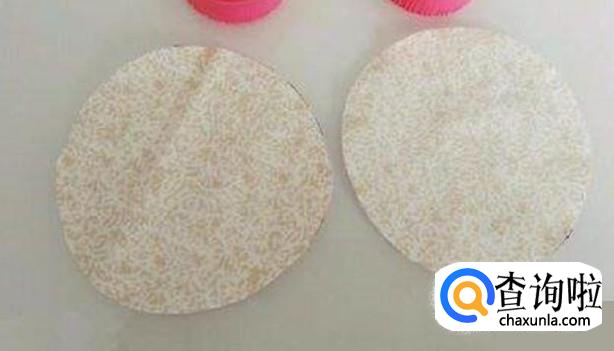 我们找一个中间带眼的铁片,也可以使用铜钱。然后参照铁片的形状剪两块较大的圆形布料。