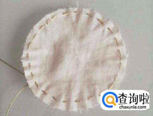 把这三瓣的部分抵在圆形的中间位置,然后用针线缝合到上面。