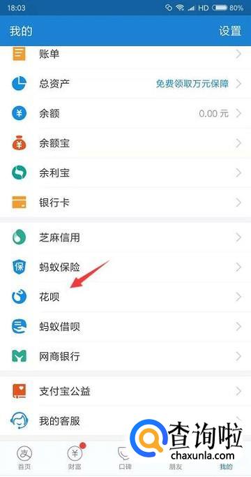 首先我们登录支付宝后先在我的页面里点击花呗功能。