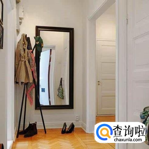 在门口的玄关处可以摆放一面穿衣镜,这样能够让我们出门的时候看一看自己的着装,也不会和大门口相冲。