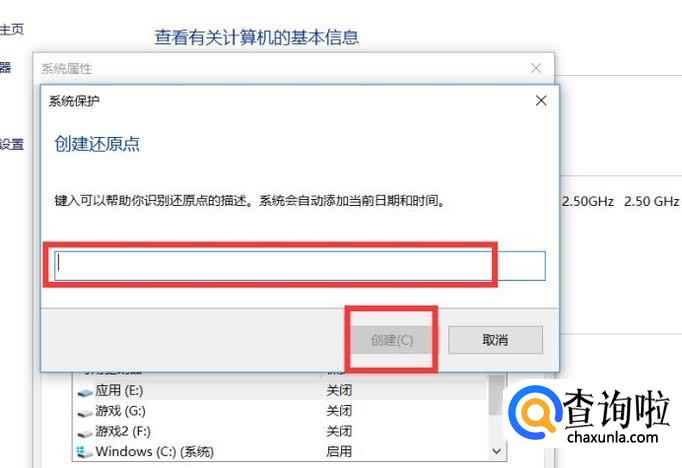 可以输入一个名字来命名这个还原点。也就是说实际上可以设置多个还原点,设置不同的名字是为了区分不同的还原点。