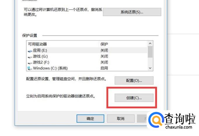 在系统保护栏的右下角有一个创建按钮,点击创建按钮。