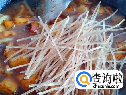 粉条不要选择那种宽粉,宽粉炖肉类好吃,但是炖土豆的话口感不好,只要那种细粉条就可以了,提前泡进水里。