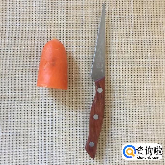 然后用刻刀把胡萝卜削成铅笔状,如下图所示。