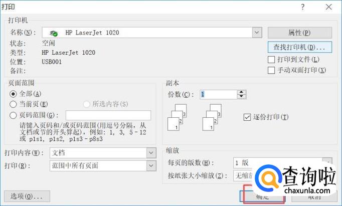 弹出的界面,我们点击确定就可以打印了,还是比较简单的,相信大家现在都会用打印机打印文件了。