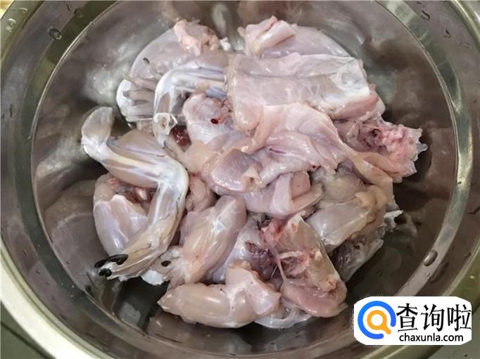 处理好牛蛙。牛蛙在春季是非常多的,到菜市场或者超市都能买到,一般都会帮忙将牛蛙的皮和头处理掉的,自己买回来以后最好还是再洗干净一些,然后将其剁成小块,这样烹饪其来会更加入味的。