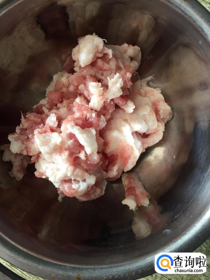 取适量的肉末,肉末肥瘦相间最好;加入少量料酒,拌匀;