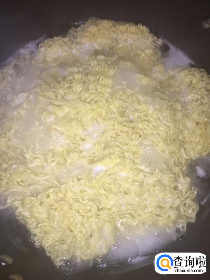 鸡蛋面稍微变软后,就将面捞出,用纯净水或者凉白开泡凉,再沥干水分备用;