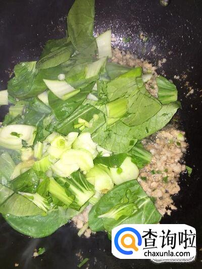 材料:鸡蛋面 青菜 小葱 肉末 豆瓣酱 食用油