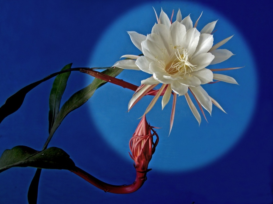 昙花原产美洲墨西哥至巴西的热带沙漠中。那里的气候又干又热,但到晚上就凉快多了。晚上开花,可以避开强烈的阳光曝晒;缩短开花时间,又可以大大减少水分的损失,有利于它的生存。使它生命得到延续。于是天长日久,昙花在夜间短时间开花的特性就逐渐形成,代代相传。