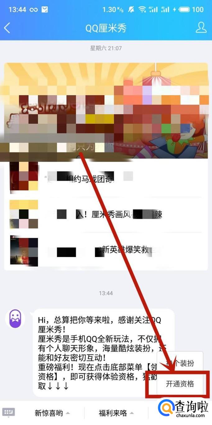 QQ厘米秀开启需要在公众号页面搜索“QQ厘米秀”并进入,点击“加关注”,然后在“好想玩呀”位置点击“开通资格”即可;或者通过好友分享的厘米秀邀请链接开通即可。以下用安卓QQ版本V7.9.9.3965演示一下。