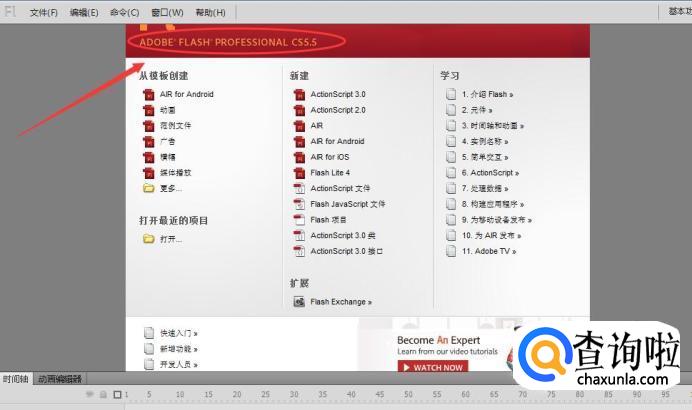 首先打开flash软件,会显示flash主界面。