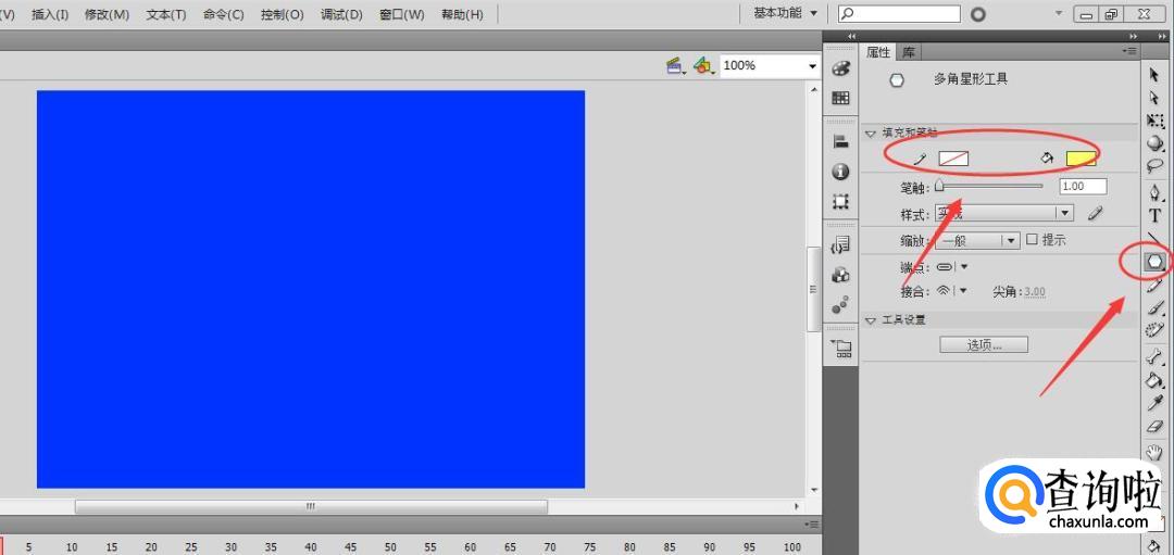 然后点击工作栏的星形工具,其中笔触颜色为无色,填充颜色是黄色。