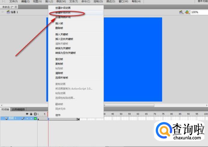 然后在第1~25帧位置,鼠标右击选择“创建补间形状”。