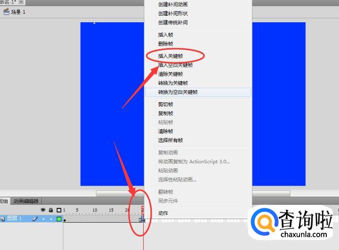 然后在第25帧的位置插入关键帧:右击第25帧处,然后选择“插入关键帧”。