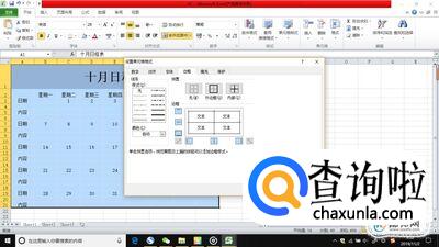 设置边框的时候,标题行不要设置边框,日期列与星期行的有一个单元格要进行斜线切分,可以选中此单元格,右键,选择单元格格式——边框——右侧的斜线。