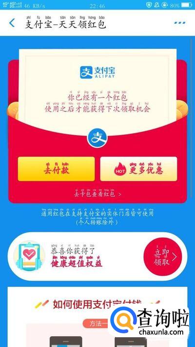 最近支付宝领红包的时间有限,希望大家要抓紧机会哦!