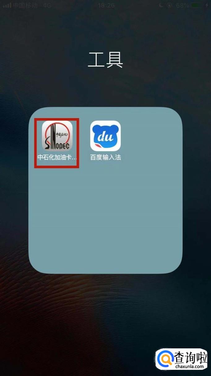 首先在我们的手机桌面上找到中国石化加油卡并点击它,如下图所示。