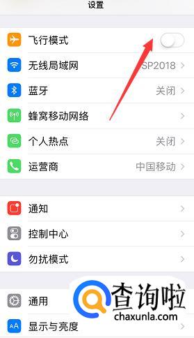 然后我们将手机的飞行模式打开,然后关闭,让手机重新检测sim卡。