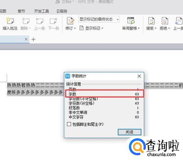 结果如图所示,这样我们就统计出来文档中的字数了,还是比较简单的,相信大家现在都会了。