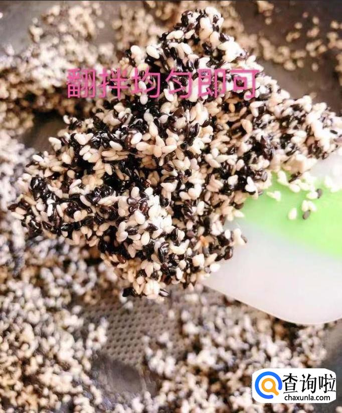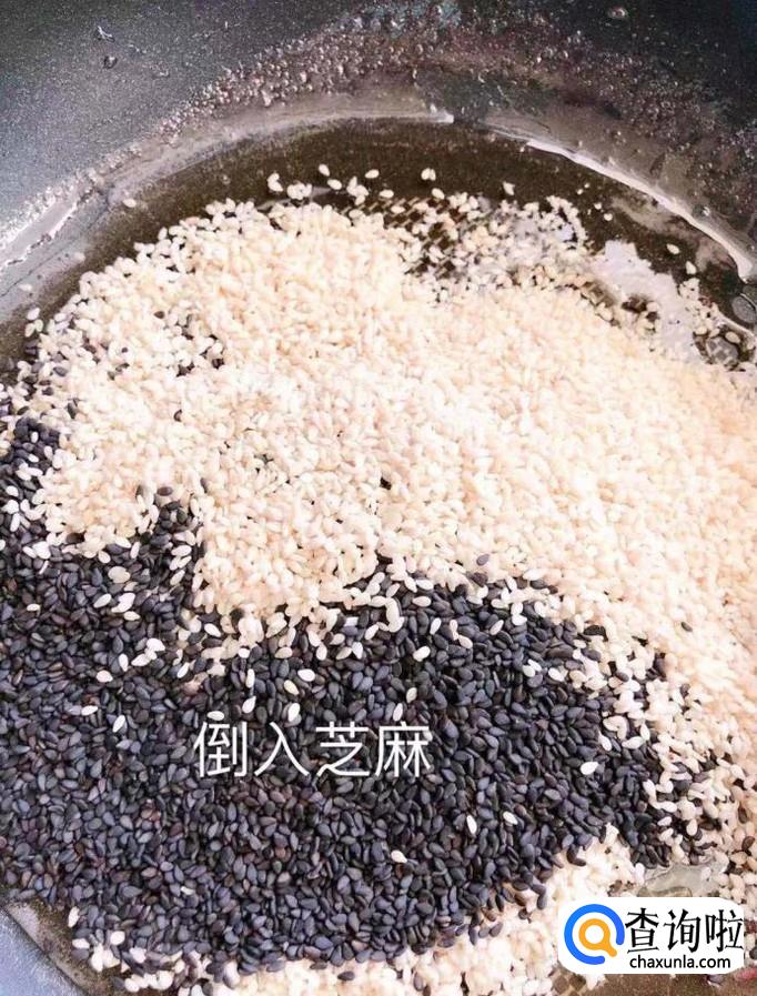 然后把芝麻倒入锅中翻炒片刻,如下图所示。