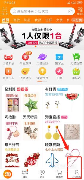 然后点击屏幕右下方的【我的淘宝】。
