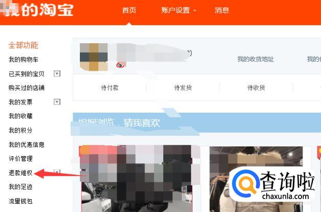 在我的淘宝页面内,点击“全部功能”下的【退款维权】按键,会出现几个子菜单栏。