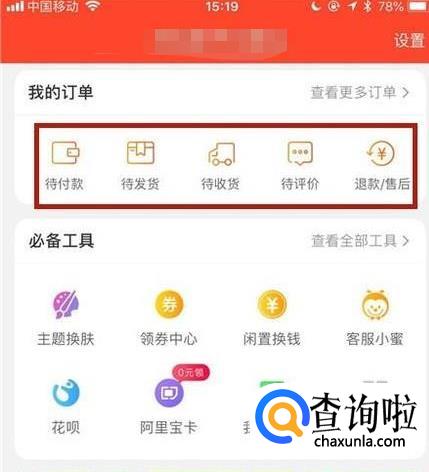 接着点击“我的订单中”的任意板块,如下图所示。