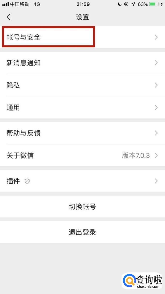 接着点击账号与安全。如图所示。