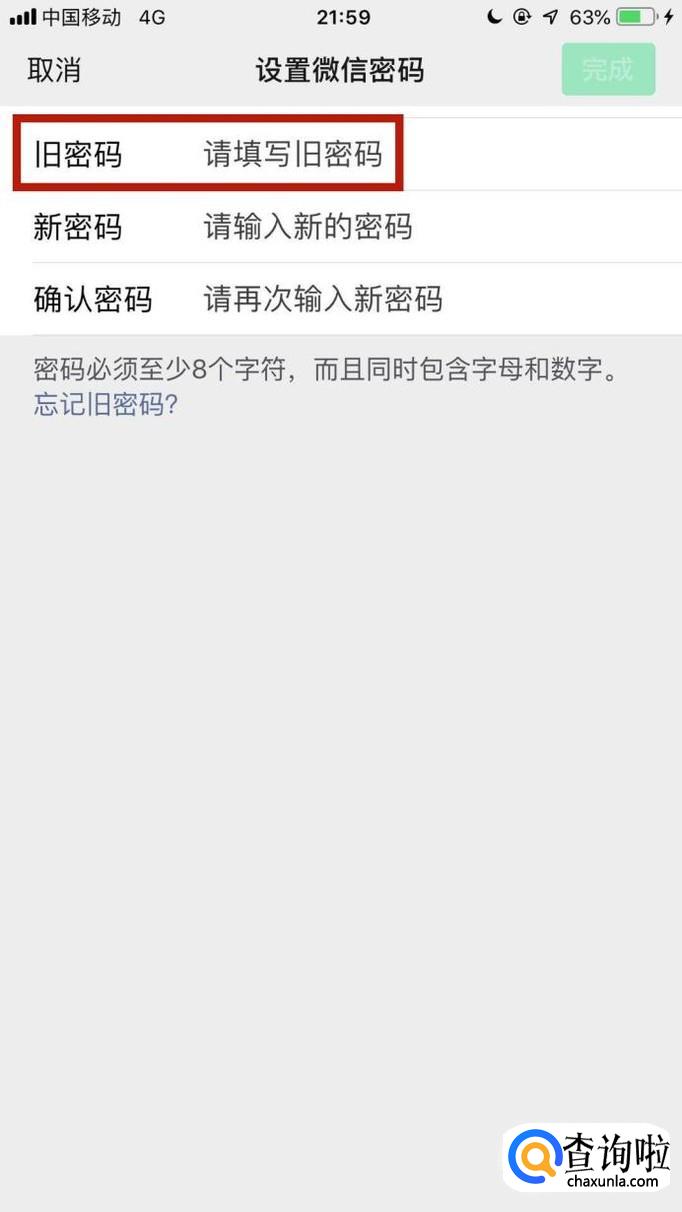 接着输入旧密码。如图所示。