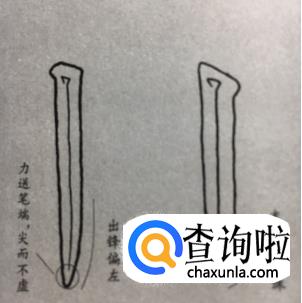 下笔时,先在落墨的地方斜向左上方45度的样子提笔向上。