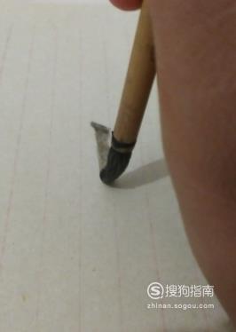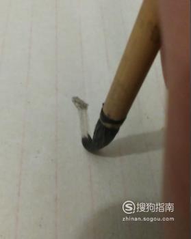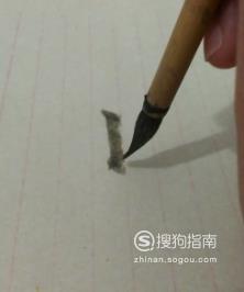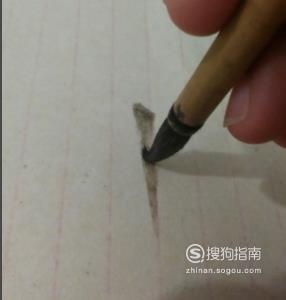 向下到达一定位置后,将毛笔轻轻向左上方提起,然后斜向下提笔。
