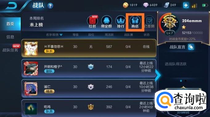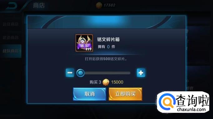 战队商店兑换。在主页面点击最下面的"战队",然后选择"商店",然后进入战队商店就能兑换铭文碎片宝箱了,一个宝箱是有500铭文碎片的 ,也算相当丰厚了,所以大家一定要加个战队哦,这样每个周都能领500铭文碎片了。