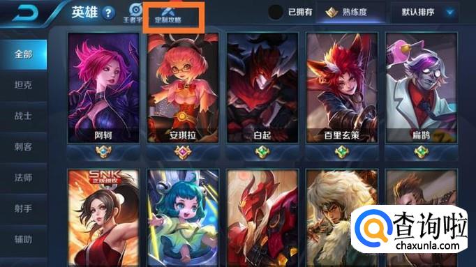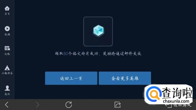 还有一个方法是以前很火的,甚至有不良商家使用这个方法卖钱。在主界面的"英雄"上点击一下,然后点进去点击"定制攻略",然后点进去点任意一个英雄,可以看到有一个小宝箱,点击领取,然后退出到邮箱领取即可,这个方法每天最多可以得600铭文碎片。