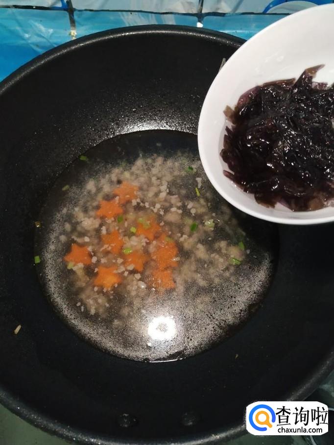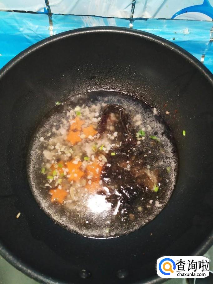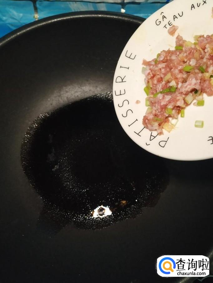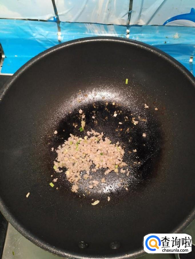 炒锅中放入适量油,油热后,将肉末放入锅中炒香,注意,油要少放一点,这道汤品本身比较清淡。