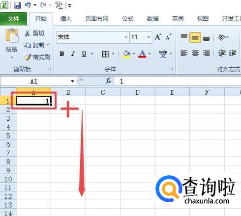 然后我们选中这个单元格,之后我们将鼠标放在右下角,出现十字符号的时候,我们进行下拉;