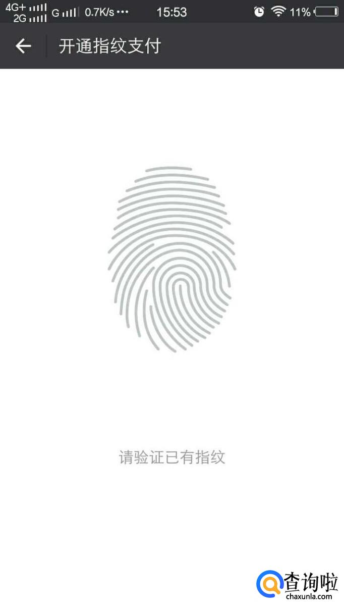 输入支付密码后,跳转到请验证已有指纹页面,然后在您的手机的指纹录入的地方录入指纹即可