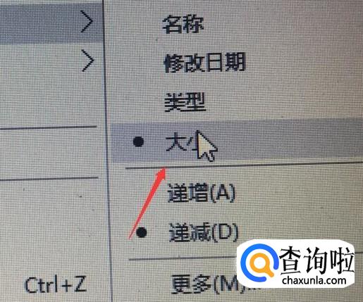 点击大小,也可以根据文件大小类型来选择,点击大小,这时候文件就会根据大小来排列,自己通过判断自己要找文件的大小来查询就很方便了。