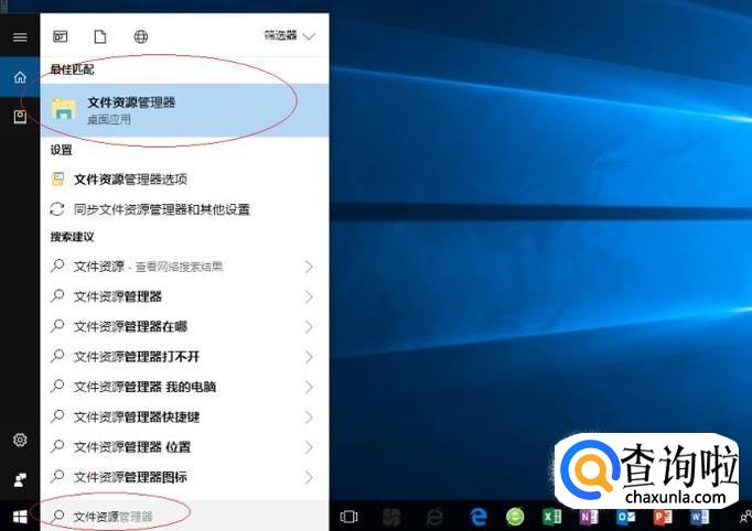 如图所示,搜索框输入"文件资源管理器"。Cortana(小娜)显示搜索结果,点击"最佳匹配→文件资源管理器"项。