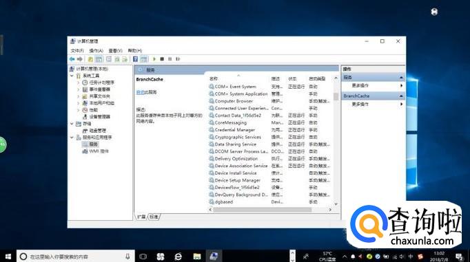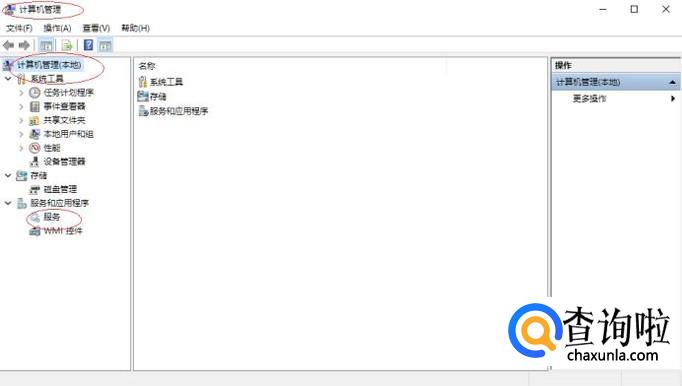 如图所示,唤出"计算机管理"程序窗口。展开左侧树形目录结构,下步将进行排除添加网络共享打印机正常但无反应的故障。