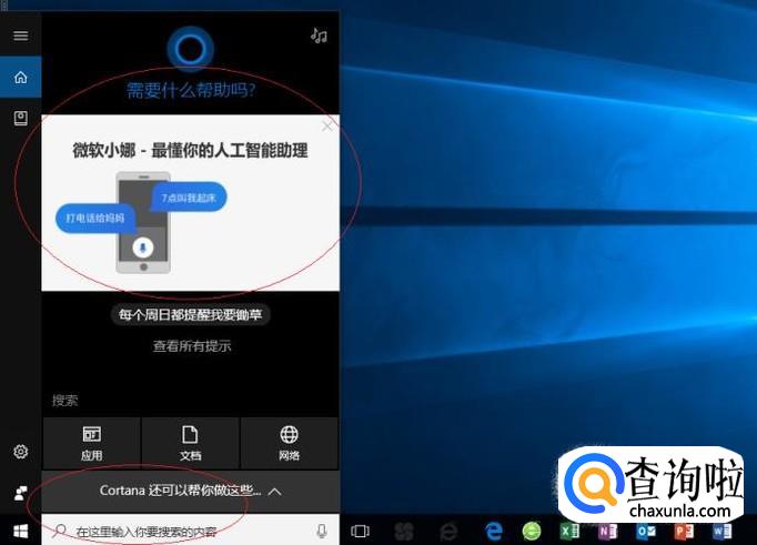 启动Windows 10操作系统,如图所示。点击任务栏搜索框,开始使用Cortana(小娜)智能语音助理。