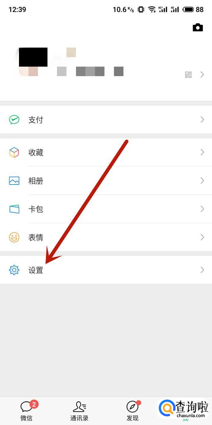 在微信“我”页面,点击“设置”,如图所示。