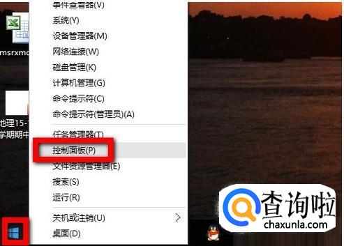 首先进入电脑桌面,点击左下角的开始图标,选择控制面板,如图所示。