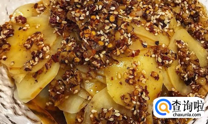 将调好的酱汁和作料全部倒入土豆中,一碗香喷喷的酸辣土豆片就完成啦。