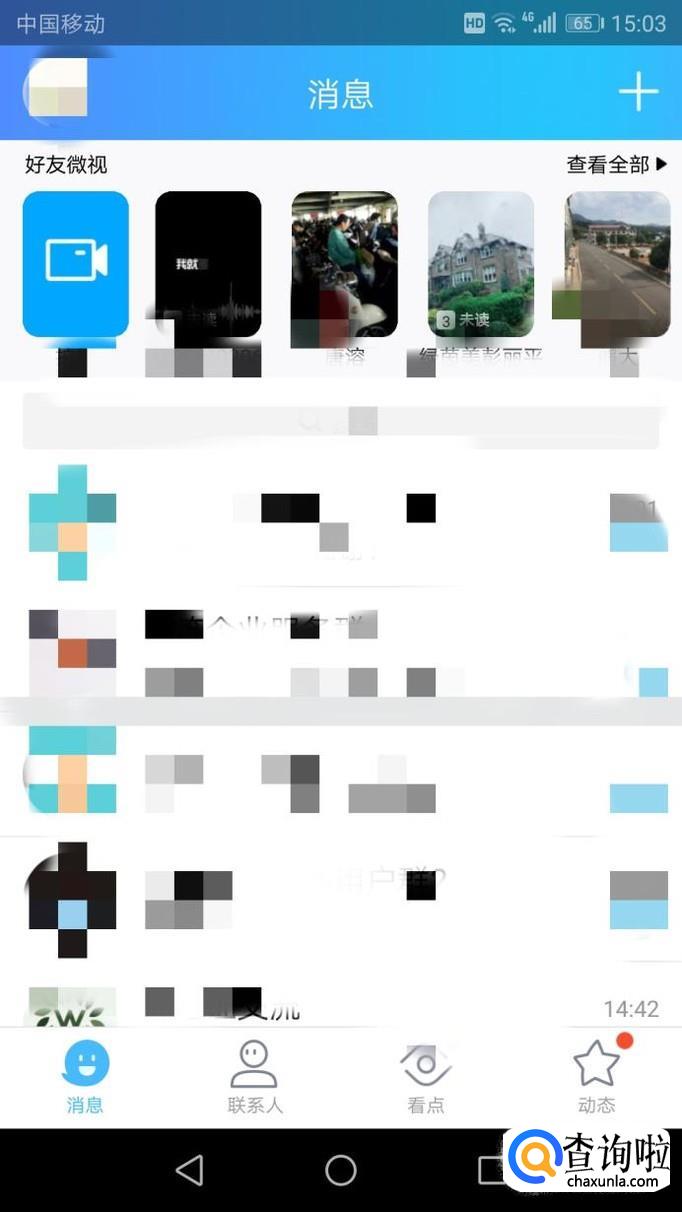 首先,我们打开手机QQ,如果开启了好友微视的可以下拉看到好友微视。