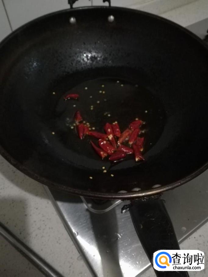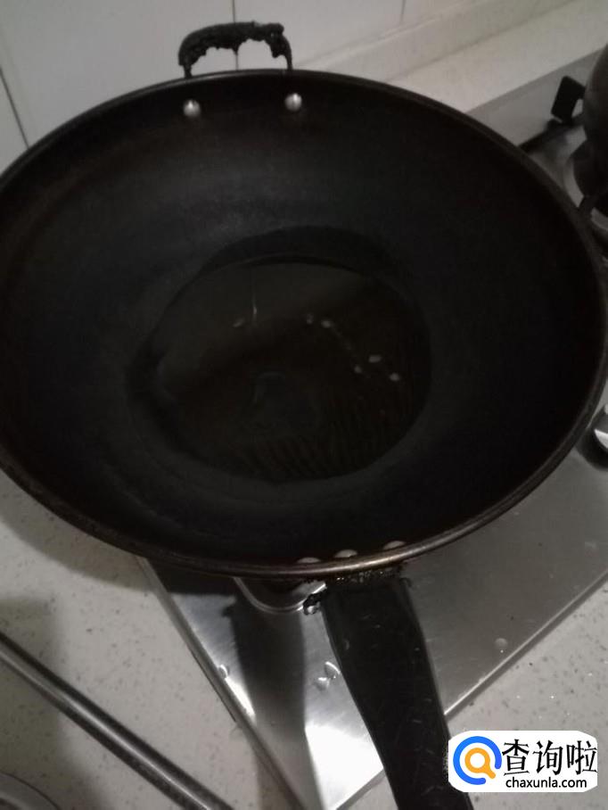 把炒锅洗干净,烧大火将水汽烧干,然后倒入适量清油、