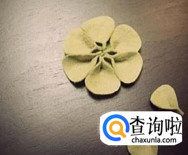 用针线把每片花瓣的根部连接在一起,然后把线抽紧,就做成了一朵花瓣好看的花朵。