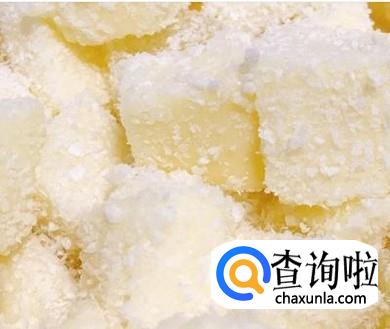 将2cm小块的奶冻放入容器中使其均匀的裹上椰蓉,此时的椰奶小方白嫩Q弹,好看又好吃。