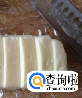 取出奶冻,倒扣在案板上,用刀将其切成2cm左右的小块